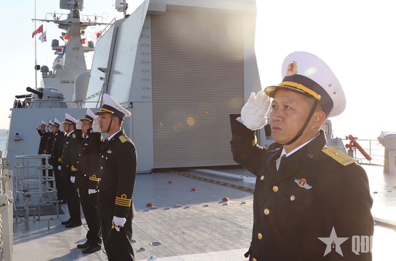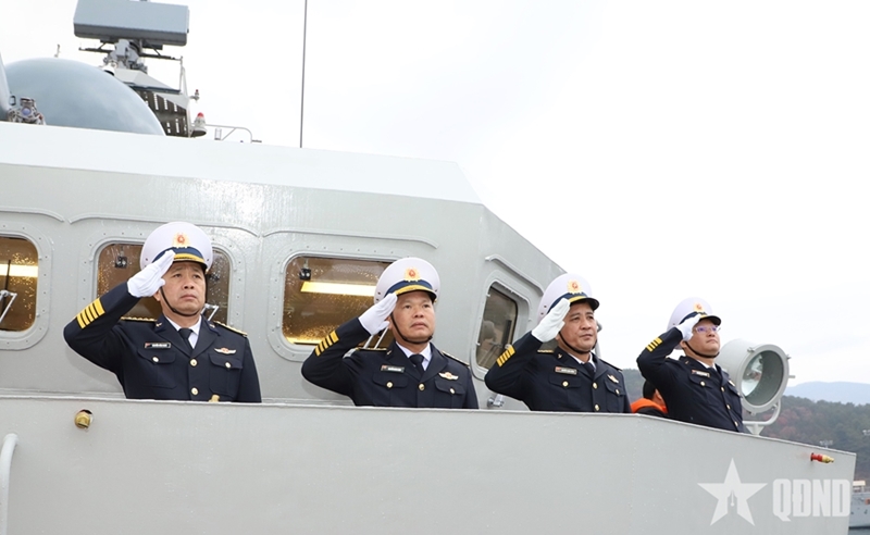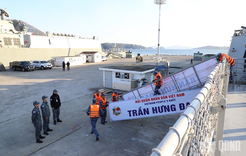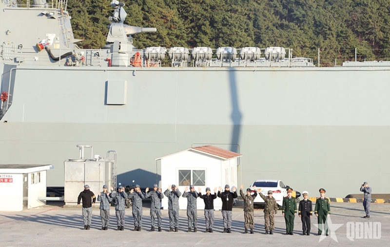 PANO - Frigate 015-Tran Hung Dao and the delegation of the Vietnam People’s Navy left Jinhae Naval Base on December 14, concluding the four-day visit and exchange with the Republic of Korea (RoK) Navy and beginning their return voyage to Vietnam.