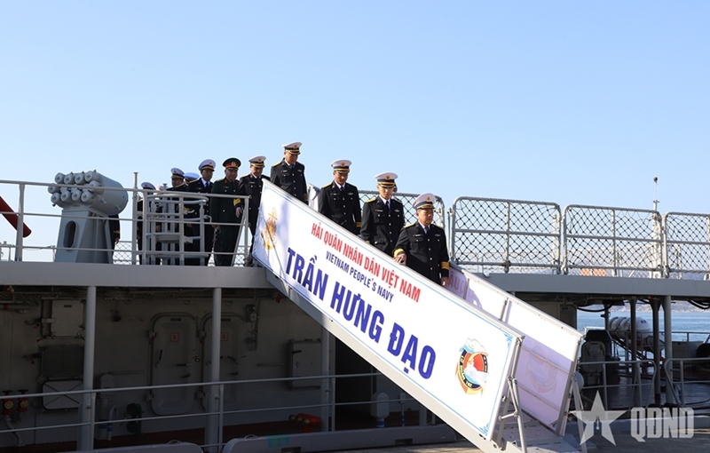 After the welcome ceremony, Japanese naval officers visited 015-Tran Hung Dao and exchanged with the Vietnamese delegation aboard the vessel.