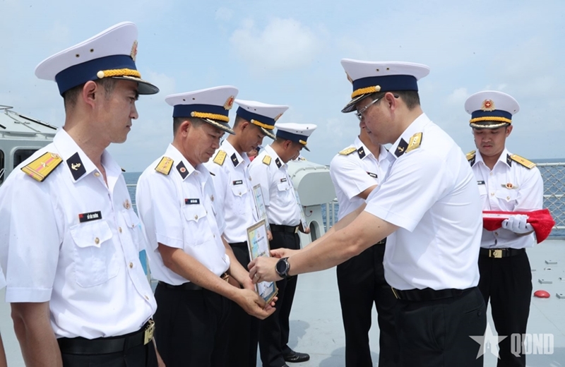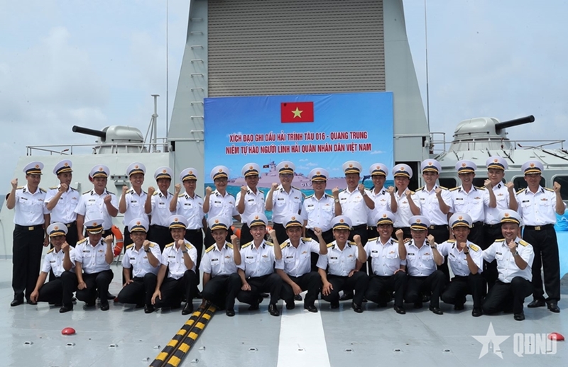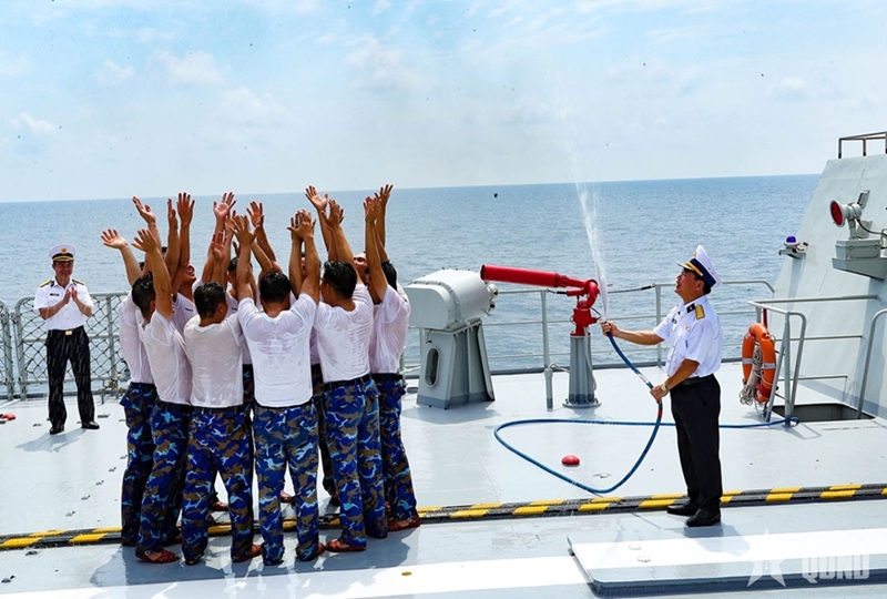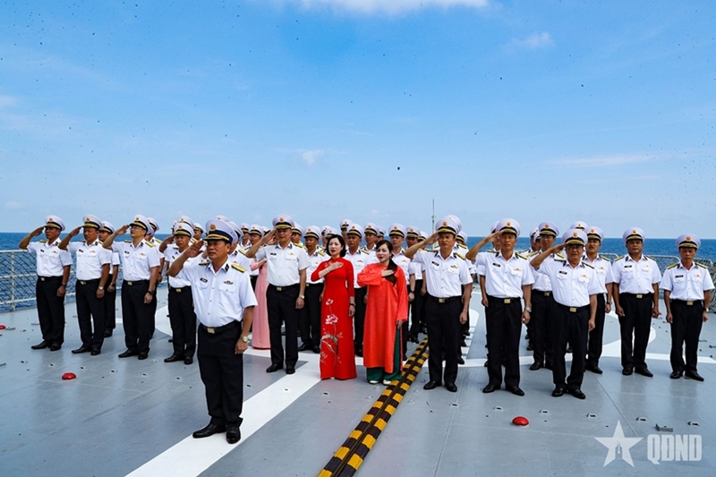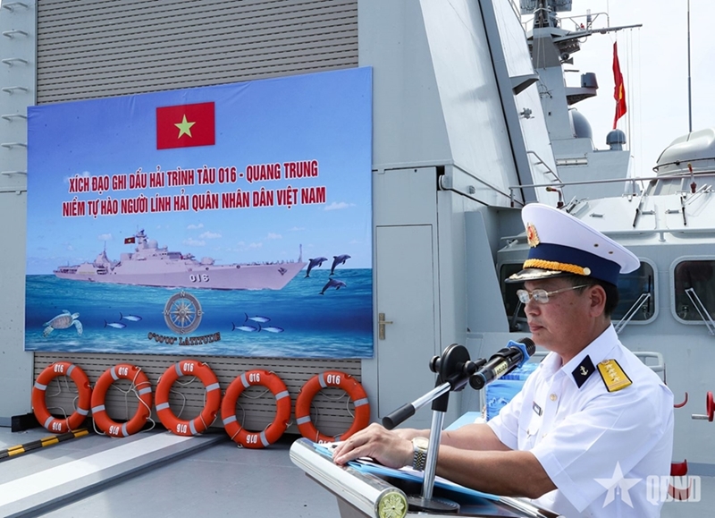 After the flag-saluting ceremony, Sr. Capt. Nguyen Minh Lanh congratulated all officers and sailors of the ship and other participants in the historic voyage on officially crossing the Equator, a memorable milestone in their military service and seafaring career.