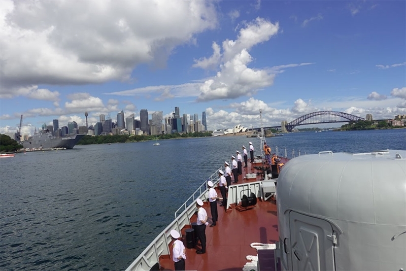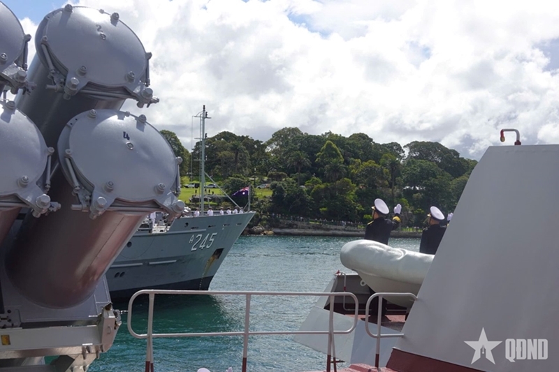 Frigate 016–Quang Trung arrived in Sydney on the morning of March 21 after a voyage of more than 5,500 nautical miles from Cam Ranh Naval Base. Prior to that, on March 20, the ship took part in formation maneuvers and aerial photography while transiting from Jervis Bay to Sydney Harbour with vessels from multiple navies.