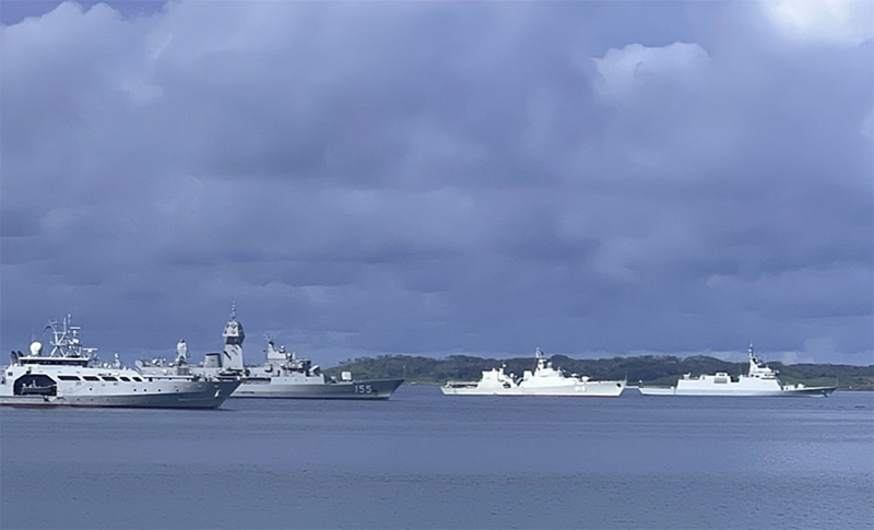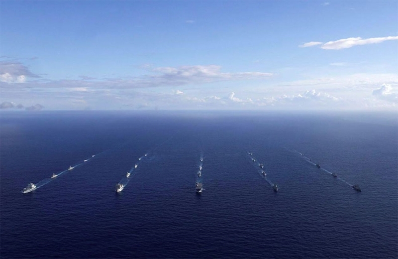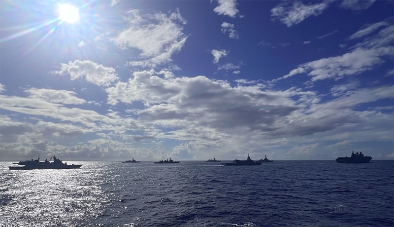 Frigate 016–Quang Trung alongside ships from other nations in formation for aerial photography (Photo: Royal Australian Navy) |