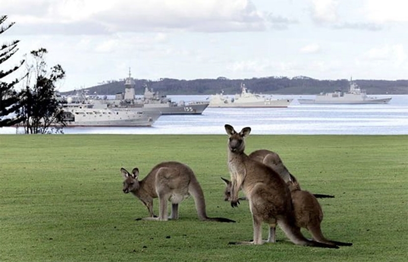 From Creswell Naval Base overlooking Jervis Bay, where Frigate 016–Quang Trung and other ships were anchored on the afternoon of March 19, many kangaroos could be seen. (Photo: Royal Australian Navy) |