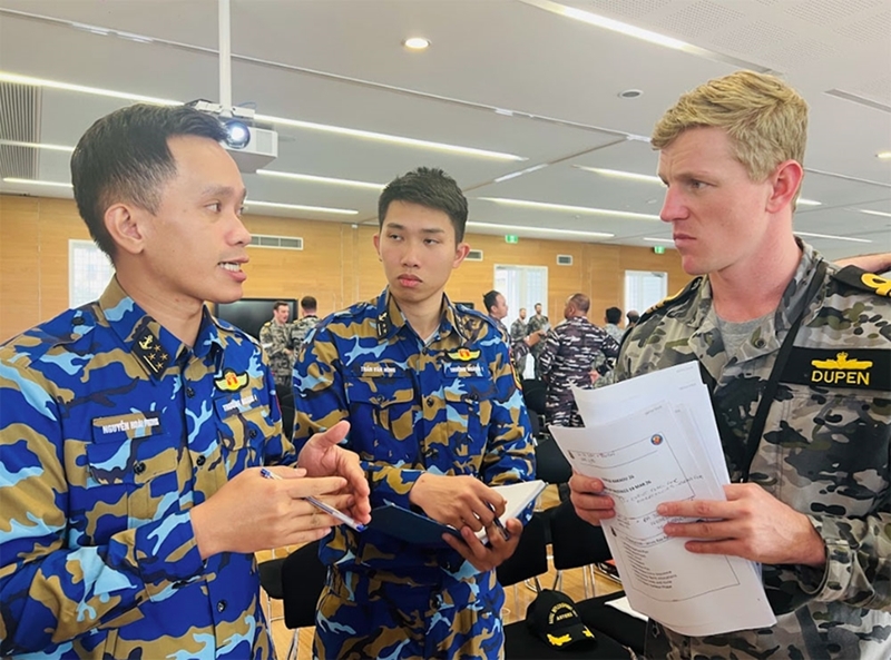 Vietnamese and Australian naval officers exchange views and finalize the sailing plan. |