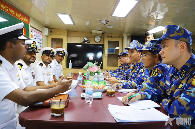 Representatives of the Eastern Fleet of the Indian Navy and the Vietnamese naval delegation discuss and agree on activity plans. |
