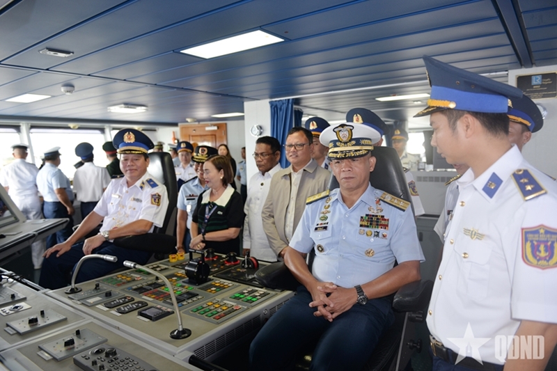 He underscored that the visit is not only a continuation of ongoing, practical cooperation programs, but also a vivid reflection of the close friendship and trust between the two forces. It provides an opportunity for both sides to exchange experience, share knowledge, and strengthen solidarity and mutual understanding, thus consolidating the friendship between the Vietnam Coast Guard and the Philippine Coast Guard. It also allows officers and sailors to exchange, learn from each other, and improve their capabilities in maritime law enforcement. Immediately after the ceremony, Rear Admiral Bibat and Philippine Coast Guard personnel toured Ship CSB 8002.