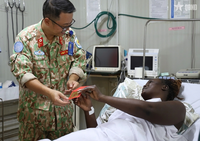 On the first day of the Lunar New Year, the leadership of L2FH Rotation 7 visited hospital wards to extend greetings and present traditional red "li xi" envelopes (lucky money) to patients. The sight of U.N. peacekeepers in uniform offering lucky money and sharing Vietnamese customs at hospital bedsides provided a moving message of hope and recovery.