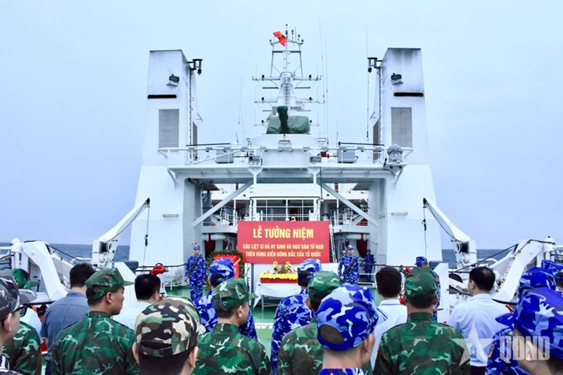 During the patrol, the Vietnam Coast Guard held a requiem ceremony for fallen soldiers and fishermen who lost their lives in the Gulf of Tonkin.