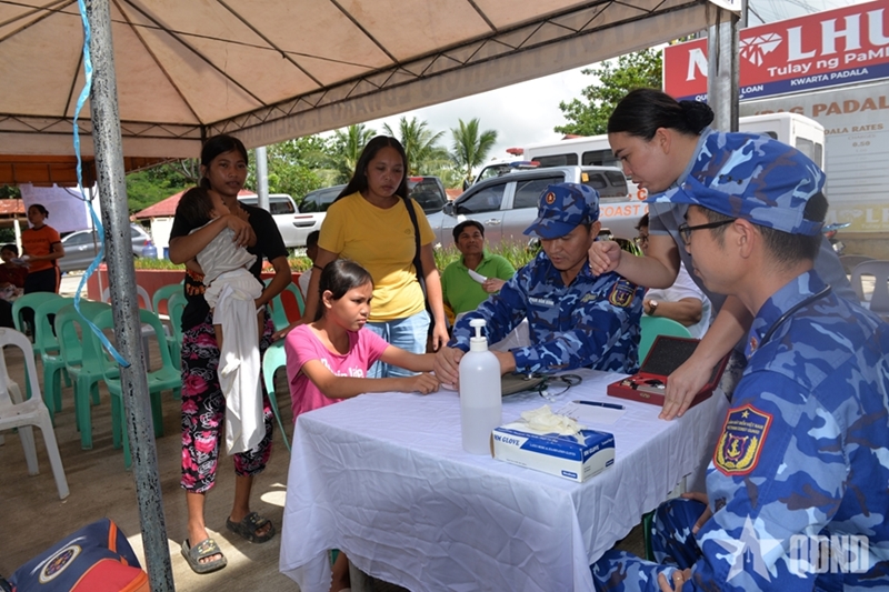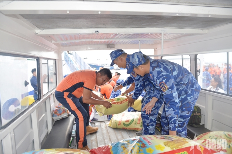 At the site, the delegation presented one ton of rice, along with instant noodles, ration bars, and bottled water, to local authorities and residents. At the same time, medical officers aboard Ship CSB 8002, in coordination with medical personnel of the Philippine Coast Guard, organized free medical check-ups and medicine distribution for local people.