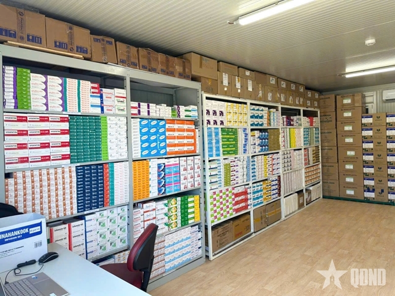 The Level-1 Field Hospital’s medical warehouse is neatly organized and standardized. |