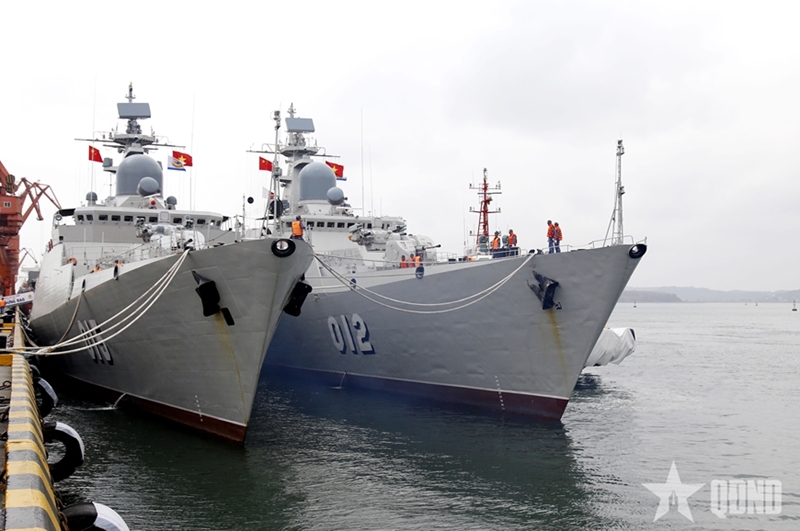 Frigate 015-Tran Hung Dao and Frigate 012-Ly Thai To of the Vietnam People's Navy dock at Fangcheng port. |
