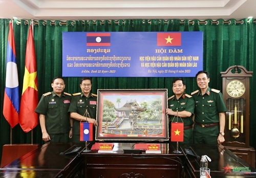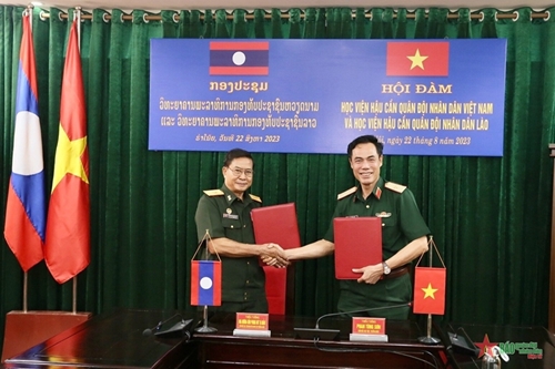 On the occasion, the two academies inked a Memorandum of Understanding (MoU). In addition, the Lao delegation toured the Hall of Fame, the Center for Training Operations, the lecture halls, the Research Institute of Military Logistics and Science, the library, and inquired after Lao officers studying at Vietnam’s Military Logistics Academy.