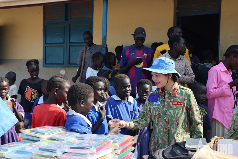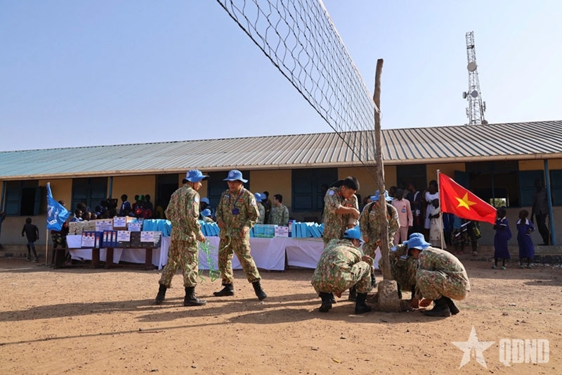 Amidst the laughter of the students, Vietnam’s peacekeepers meticulously repaired every detail of the volleyball court, ensuring that children have a safer space for recreation and learning. Witnessing the children’s rare but heartfelt moments of joy has further strengthened the motivation and spirit of Vietnam’s blue berets as they carry out their noble peacekeeping mission.