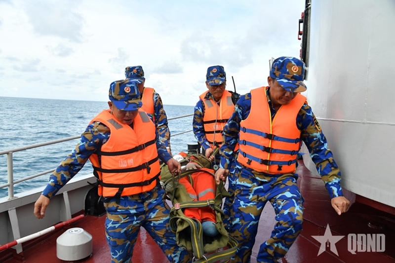 On December 12 and 13, Ship 09 took part in field training exercises at sea with naval ships from ASEAN countries and the U.S. Navy. The naval ships performed different drills such as tactical maneuvers in column, double line abreast, diamond, and sector formations; practicing flag hoist and flashing light communication; damage control; search and rescue; maneuvering for aerial photography, and saluting at sea.