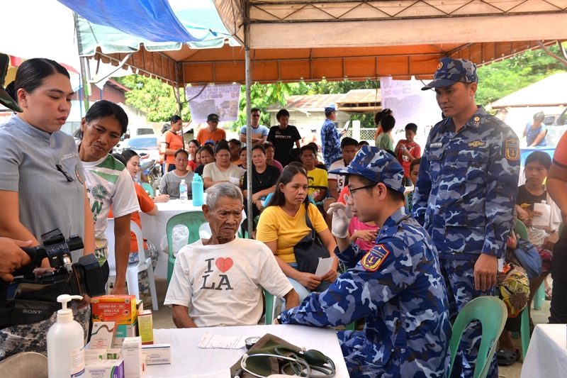 The medical personnel of the Vietnam Coast Guard provide free medical examinations and medicines to people affected by the typhoon and earthquake in Cebu Province, the Philippines, October 2025. |