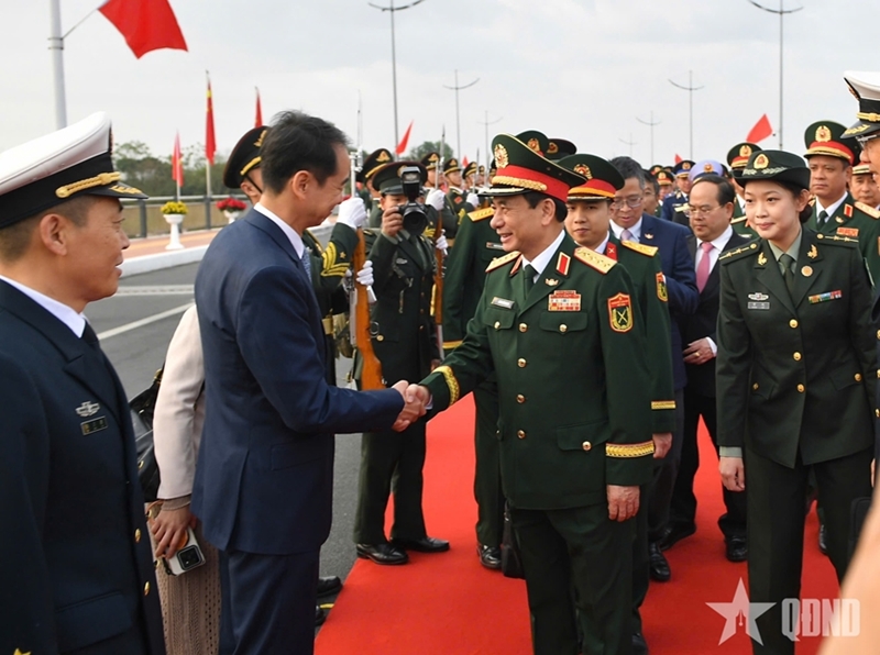 PANO - On March 19, Chinese Minister of National Defense Senior Lieutenant General Dong Jun hosted a welcome ceremony at Dongxing International Border Gate for his Vietnamese counterpart General Phan Van Giang and the Vietnamese delegation attending activities within the framework of the ongoing 10th Vietnam - China Border Defense Friendship Exchange in China.