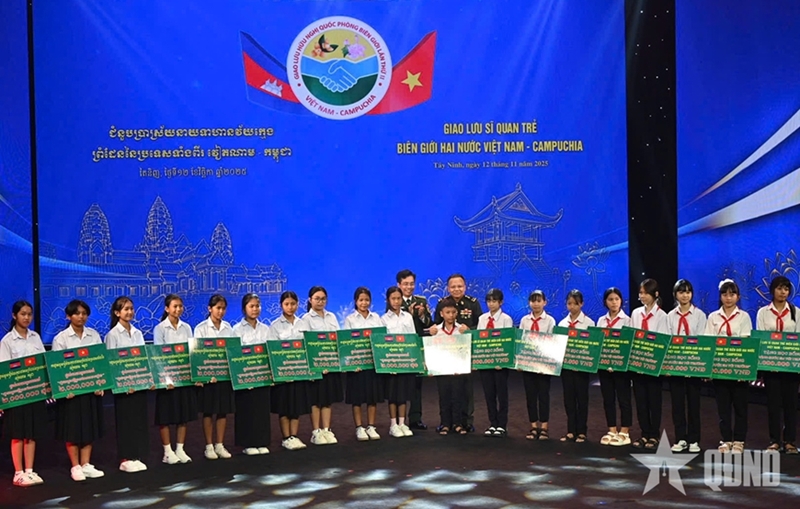 At the event, the Vietnamese Ministry of National Defense presented the “Paving the way to school for students” scholarships to 60 disadvantaged students from Vietnam’s Tay Ninh province and Cambodia’s Svay Rieng province.