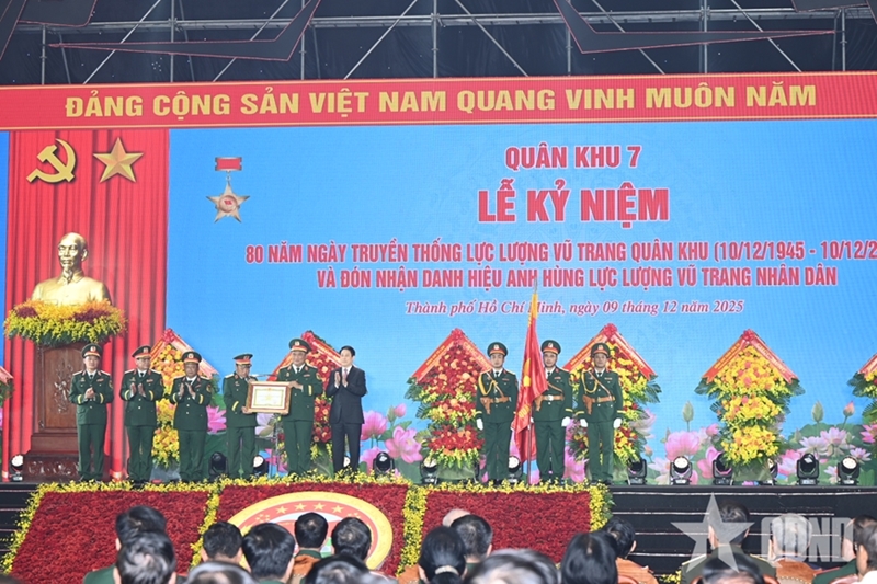 Addressing the ceremony, President Luong Cuong highlighted that over the past eight decades, the armed forces of Military Region 7 have remained absolutely loyal to the Party and the fatherland, closely bonded with the people, and steadfast in overcoming all challenges. They have fought heroically and secured numerous outstanding victories, making significant contributions to national liberation and reunification, and to the cause of building and safeguarding the Socialist Republic of Vietnam, while also fulfilling many noble international duties.
