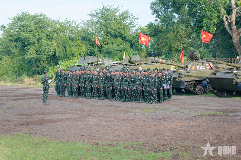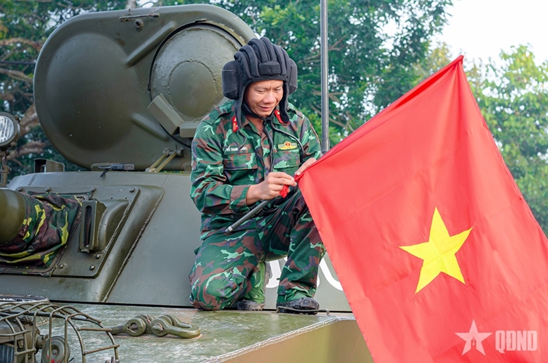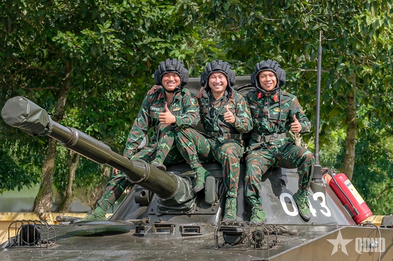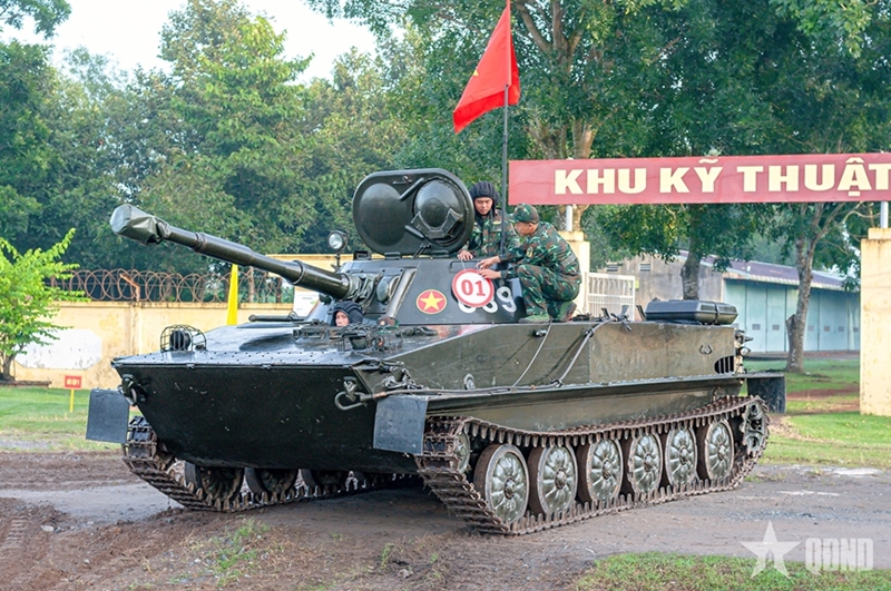 Having participated in numerous tests, Non-commissioned Major Vo Thanh Thuong, driver of PT-76 of Company 1, Battalion 2, always ensures thorough preparation before executing the amphibious driving test. |