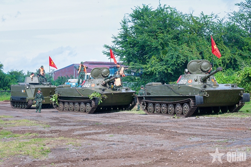 PANO - Under the scorching sun of the Mekong Delta and the still waters of Dong Tam Port, Armored Brigade 416's tanks and armored vehicles rolled one after another into the river, creating a scene both majestic and resolute.