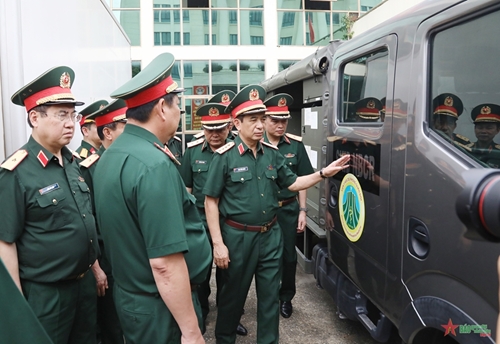General Phan Van Giang tours several medical equipment of the military medical sector. |