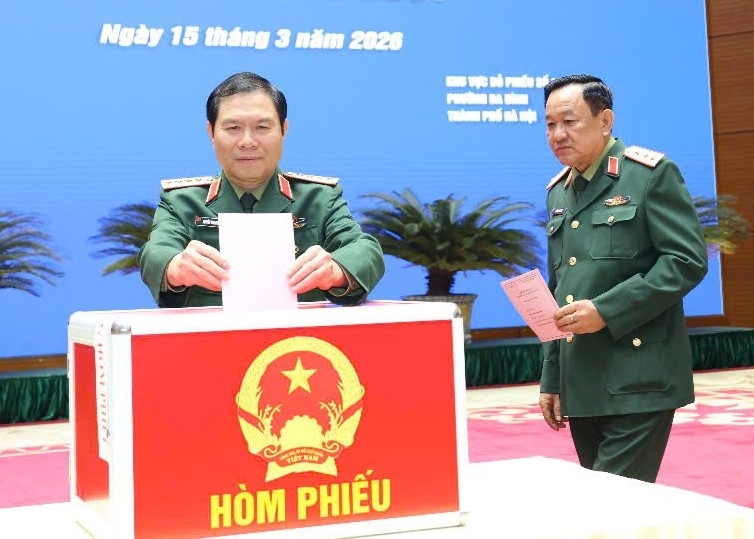 Chief of the General Staff and Deputy Defense Minister General Nguyen Tan Cuong (left) casts his ballot. |