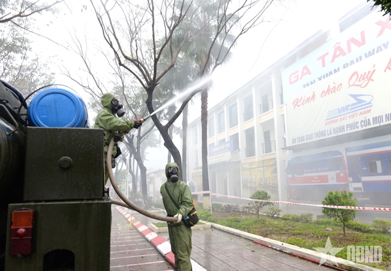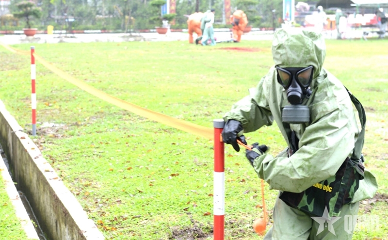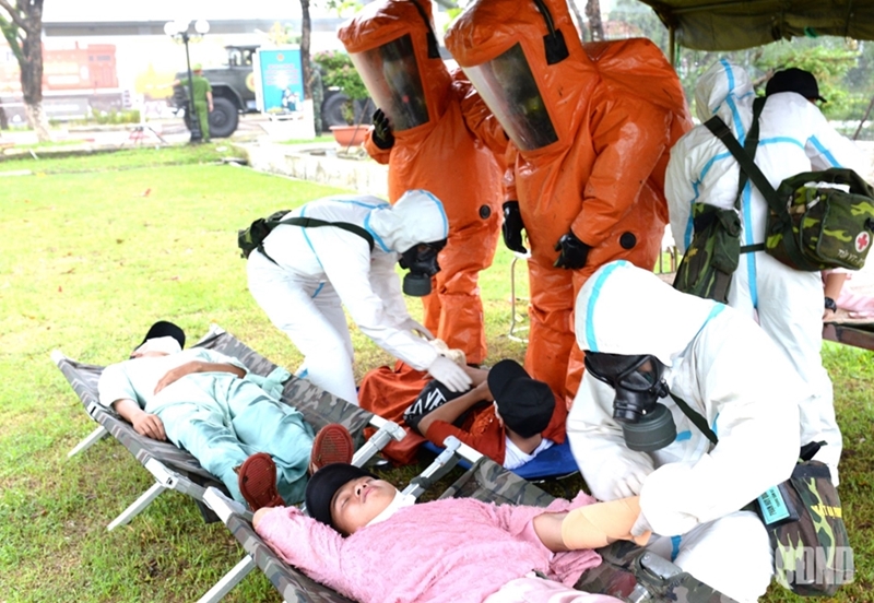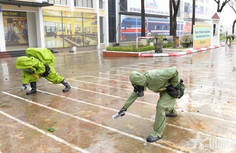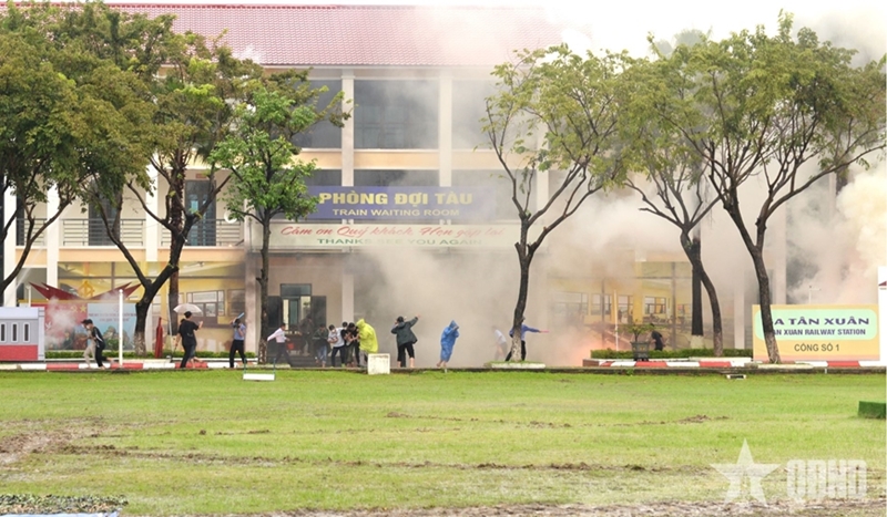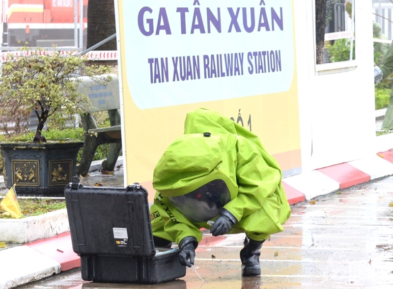 The simulated scenario was that a hazardous incident occurs when an unmanned aerial vehicle (UAV) carrying dangerous materials crashes near Tan Xuan Station, dispersing toxic substances within a confined area and affecting civilians and infrastructure. The situation requires the mobilization of emergency response forces to isolate the area and decontaminate the environment.