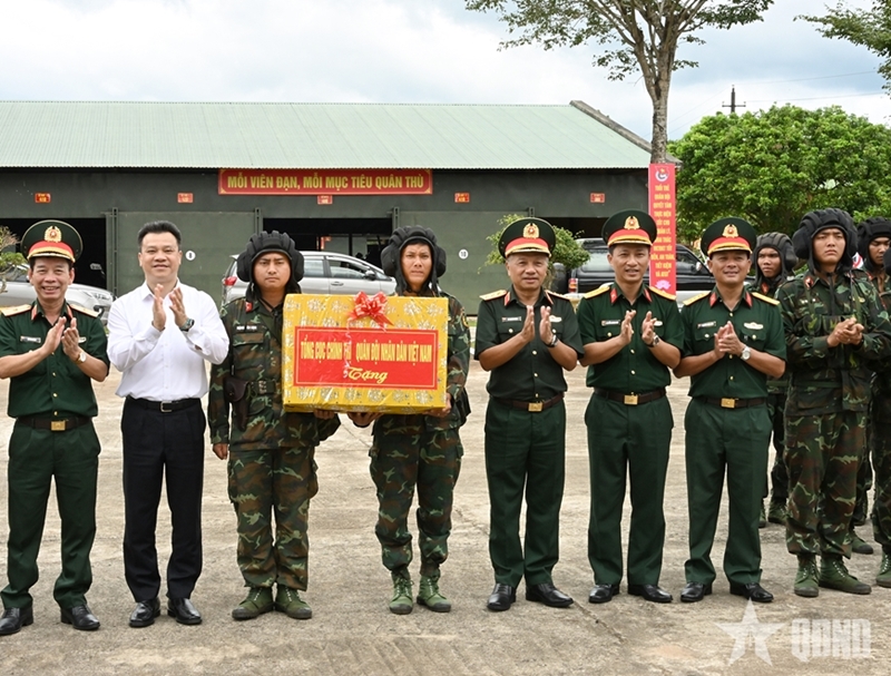 Gen. Minh (fifth from left) presents gifts to Mechanized Infantry Regiment 48 at the event. |