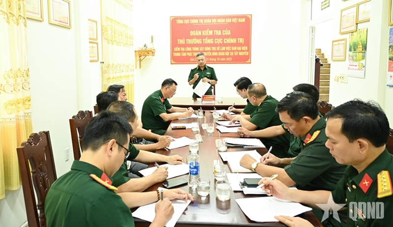 In the afternoon the same day, Gen. Minh inspected the construction progress of the bureau of the Military Broadcasting Center in the Central Highlands. He praised the advisory and guiding role of the Department of Logistics under the GDP, as well as the responsibility and professionalism of the center and contractors.