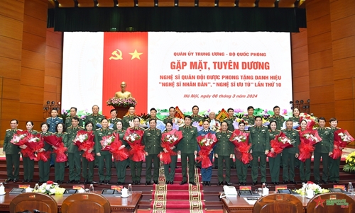 PANO - The Central Military Commission (CMC) and the Ministry of National Defense held a meeting with and honored military artists, who have been presented with the titles of People’s Artist and Meritorious Artist, on March 6 in Hanoi.