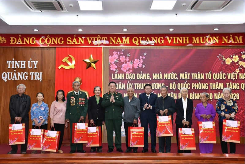 He also distributed Tet gifts from the Central Military Commission, the Ministry of National Defense, the Vietnam Fatherland Front, and the Vietnam General Confederation of Labor to 100 policy beneficiary families, 400 poor households, and 300 disadvantaged workers. That morning, General Nghia greeted the Quang Tri Provincial Military Command and paid tribute to fallen heroes at the Long Dai Ferry Terminal memorial, dedicated to 16 youth youth volunteers.