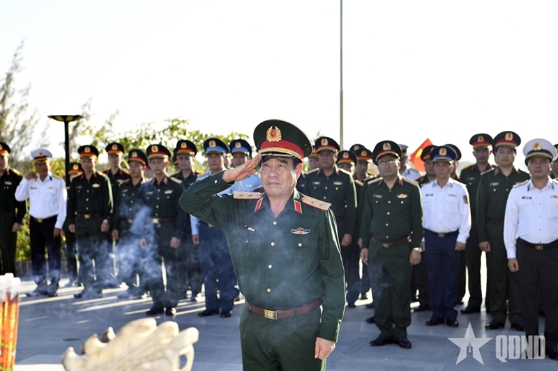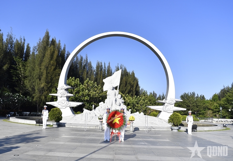The delegation paying tribute to 64 officers and soldiers who heroically sacrificed their lives defending maritime sovereignty in 1988, at the Gac Ma Soldiers Memorial Site in Khanh Hoa |