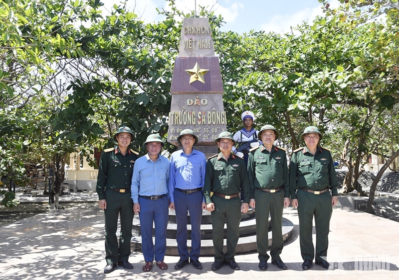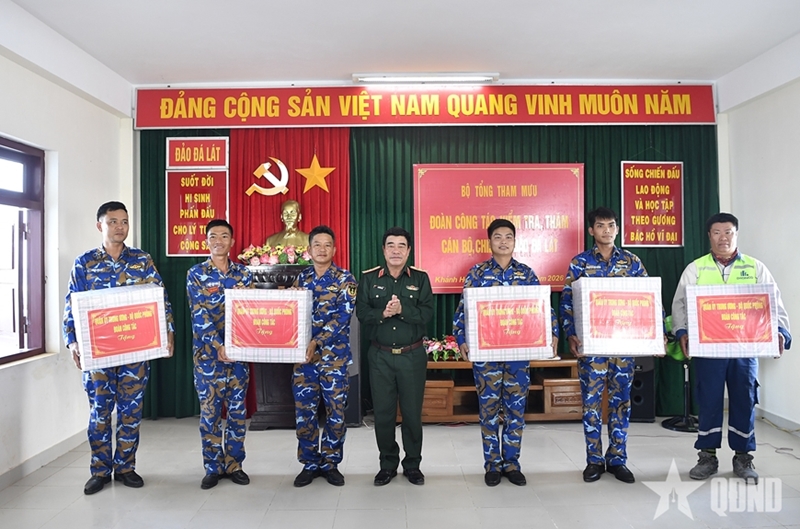The delegation inspected various locations, including Da Nam, Son Ca, Da Thi, Sinh Ton Dong, Len Dao, Toc Tan C, Phan Vinh B, Da Dong A, Truong Sa Dong, Da Tay A, Da Lat, and the DK1/14 platform. At each site, they evaluated combat readiness, discipline, political work, and logistics, while also assessing the welfare of troops and civilians. Activities included meeting personnel, presenting gifts, and attending memorial services for fallen soldiers.