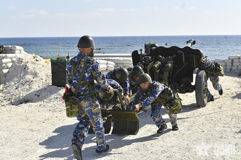 Officers and soldiers conduct field training drills on the island. |
