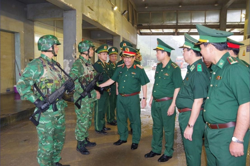 Inspecting task performance of troops at Cau Treo International Border Gate |
