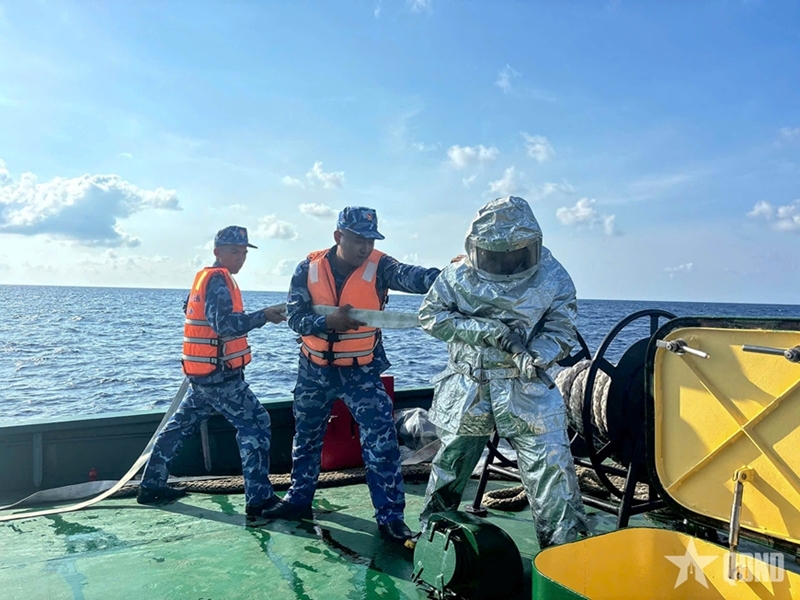 Firefighting and damage control drills while carrying out missions at sea |