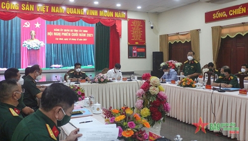 Addressing the meeting of the military party committee of Tay Ninh province held under the chair of Mr. Nguyen Thanh Tam, Secretary of the provincial Party Committee and Secretary of the provincial Military Party Committee, Major General Nguyen Truong Thang, Commander of Military Region 7, highly valued the provincial military party committee for their comprehensive and effective implementation of staff role, military-defense affairs, mass mobilization, religious affairs and COVID-19 prevention and control work.