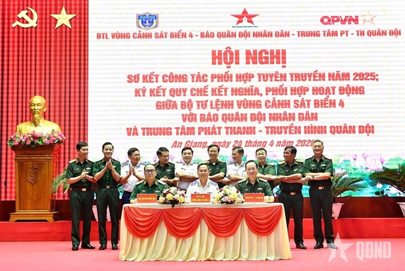 The Coast Guard Region 4 Command, the People’s Army Newspaper and the Military Broadcasting Center sign twinning and coordination agreement. |