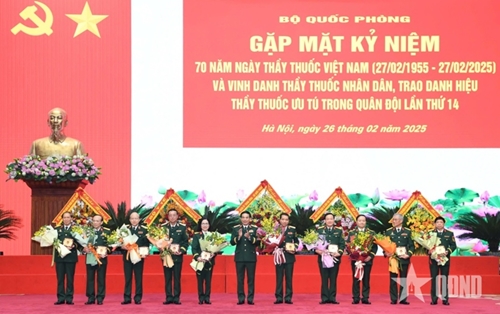 PANO - The Ministry of National Defense (MND) held a meeting on February 26 to celebrate the 70th anniversary of the Vietnam Doctors’ Day (February 27, 1955 - 2025) and present the titles “The People's Doctor” and “The Meritorious Doctor” to medical officers in the military.