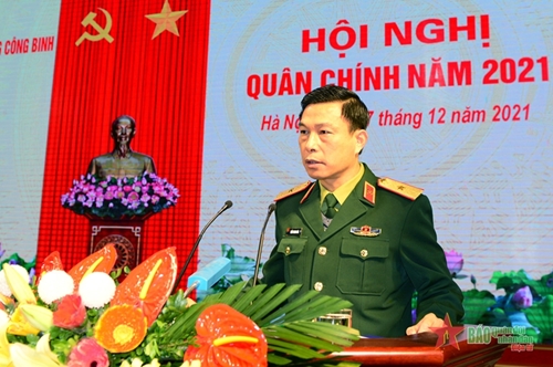 Major General Tran Trung Hoa, Chief of the Engineering Corps, addresses the politico-military conference of the corps. |