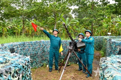 Militia troops of Phuong Binh commune, Phung Hiep district, Hau Giang province train with a 12.7mm anti-aircraft machine gun. |