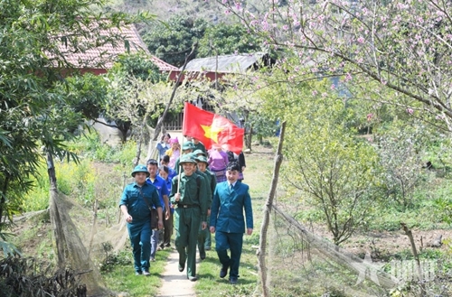 Militiamen of Dong Sang ward, Moc Chau town, Son La province see off local youths to perform their military service. |