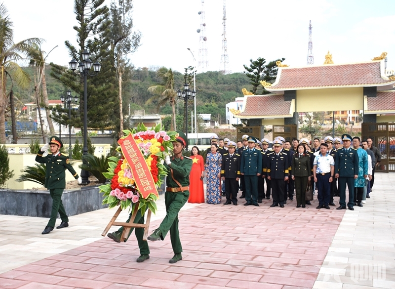 The delegation offers incense and flowers at the Martyrs’ Memorial of Bach Long Vi special zone. |