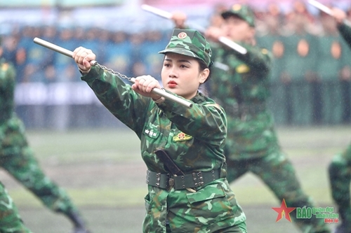 Nghe An province’s border guard troops flexibly use nunchaku to control and capture criminals. |
