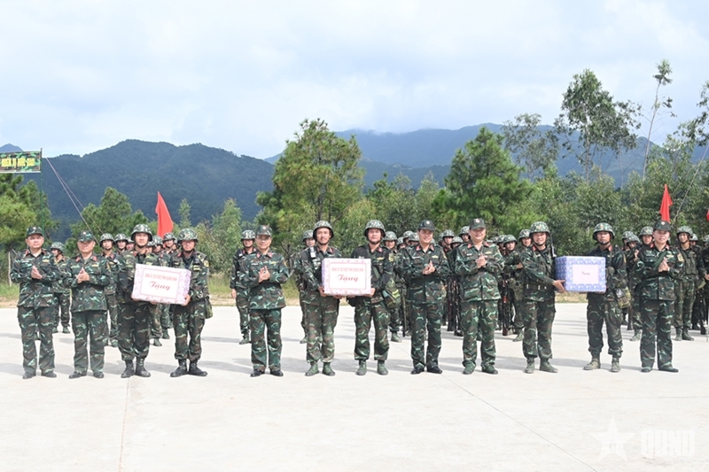 On this occasion, the Quang Ninh Provincial Military Command and Regiment 244 presented gifts to officers and soldiers with high achievements in the exercise.