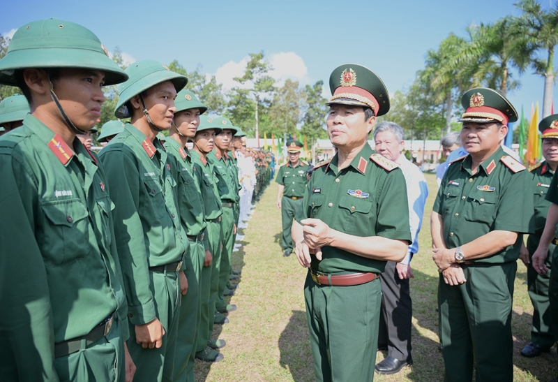 Gen. Cuong encourages officers and soldiers at the event. |