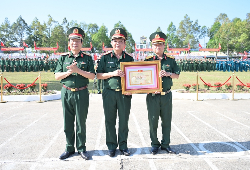 General Nguyen Tan Cuong presents the certificate recognizing the Dong Thap provincial Military Command as a comprehensively strong, “typical and exemplary” unit. |