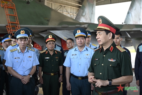The defense leader asked the service in general and inspected units in particular to strictly observe discipline and guard duty regulations, effectively manage the air and flight activities as regulated; organize combat readiness status shifting exercises and fire prevention and fighting drills; develop close-to-combat reality training programs and contents; well coordinate with other agencies and units to ensure adequate equipment and smooth communication for missions to enhance the quality of combat readiness training and air management.
