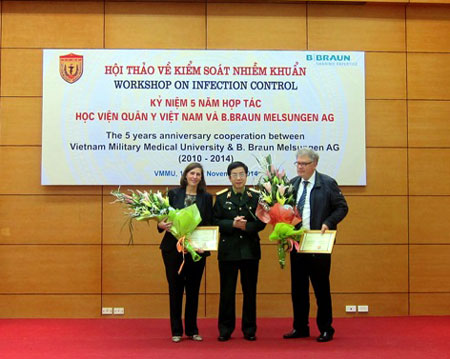 PANO - Vietnam Military Medical University (VMMU) on November 18th held a workshop to exchange experiences on infection control and recognize the contributions of German experts from B.Braun Melsungen AG Company in the university's training and researching cause during their 5 years of cooperation.