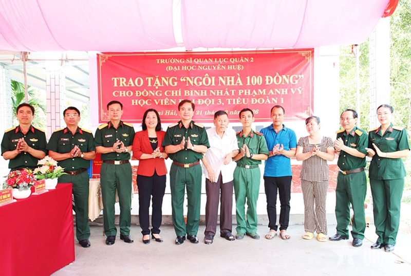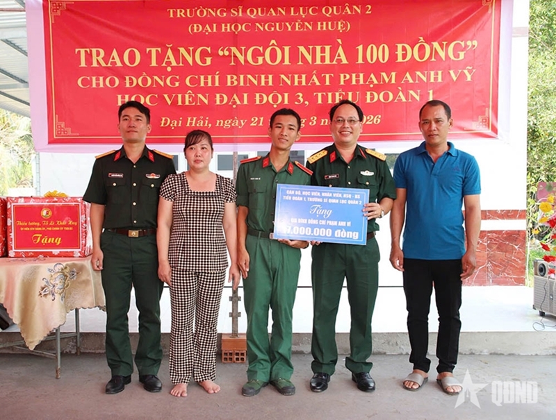 PANO – On March 21, in Dai Hai commune, Can Tho City, the Army Officer Candidate School No.2, in coordination with local Party committees and authorities, presented a “VND 100 house” to the family of Private First Class Pham Anh Vi, a first-year cadet of Company 3, Battalion 1 of the school.