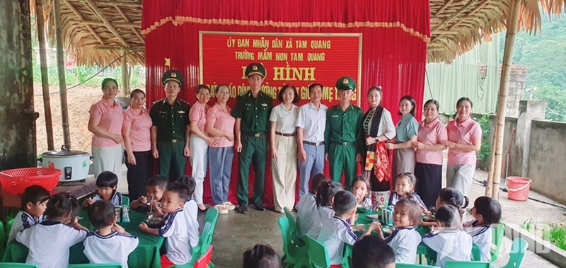 Le Hong Quang, Principal of Tam Quang Kindergarten, said that border guard officers and soldiers always assist the school in maintaining facilities and improving learning conditions, while also initiating activities to care for the health and wellbeing of local children.